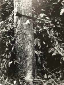 Ecorce: brun grisâtre, (ép 2 cm), finement fissurée, tranche crème avec des lignes blanches et foncées.